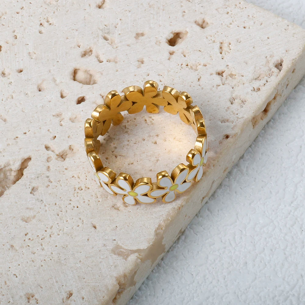Korean Fashion Little Daisy Rings for Women Girl Fresh Style Accessories Fancy Cute Stainless Steel Ring Gift Statement Jewelry