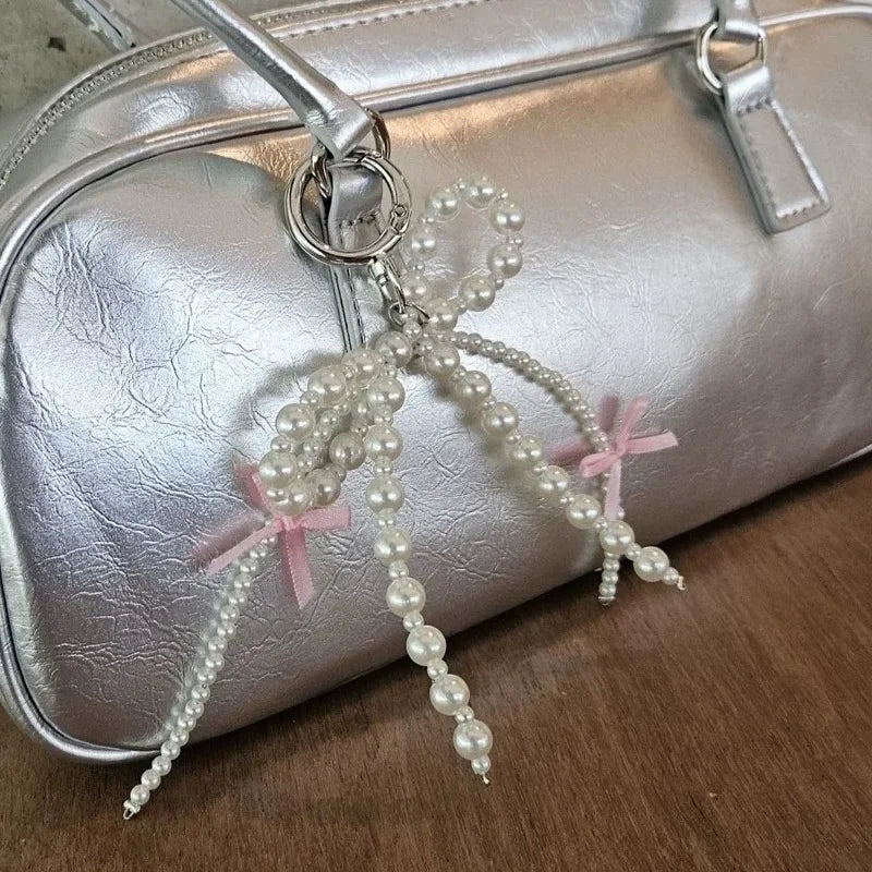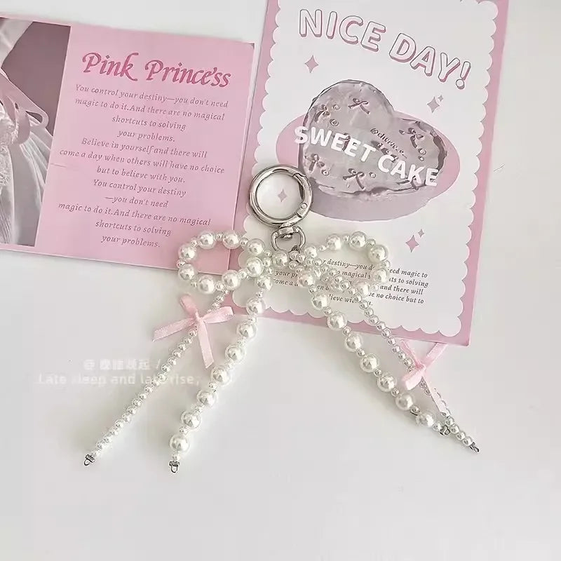 2025 New Korean Fashion Sweet Pearl Bow Keychain Heart Pendant Keyring Y2K Ins Aesthetic Holder for Girl Bag Pendant Accessories